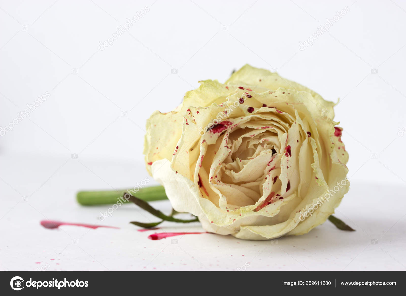 Your white rose blood stock images are ready. Use them in commercial designs under lifetime, perpetual & worldwide rights. Red and white spotted rose. Also as a gift for another lover of halloween and gothic accessories, the white rose with blood drops is a nice idea. Besides good quality brands, you'll also find plenty of discounts when you shop for blood rose during big sales.